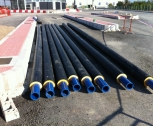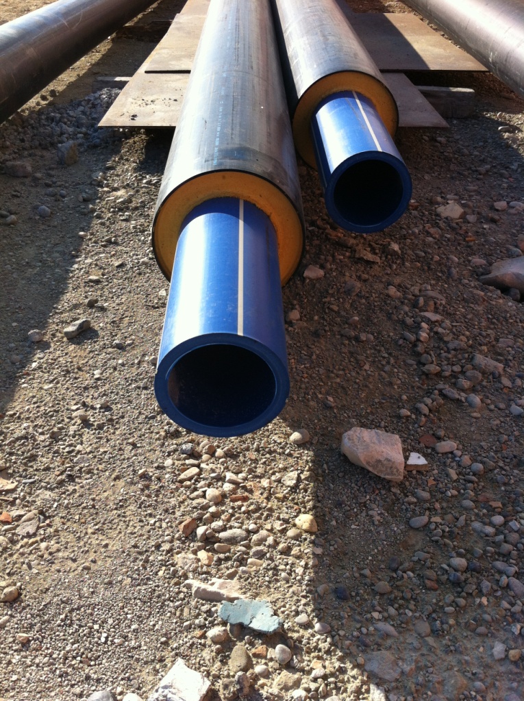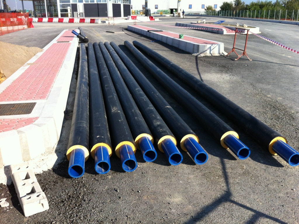 - Minimalna izguba toplote na enoto dolžine zahvaljujoč nizkemu koeficientu termične prevodnosti U (W/m°C), tudi ob močni toplotni razliki dT; na to vpliva predvsem majhna termična prevodnost cevi, ki je enaka zgolj 0,24 W/mK. Z odlično in enakomerno izolacijo s pomočjo trde poliuretanske pene (PUR), ki je injecirana v notranji prostor okroglega križnega reza med priključek in zunanjo ovojno cev iz PEHD, so cevi z vidika varčevanja energije visoko učinkovite (prevodna vrednost jekla je 45 W/mK).